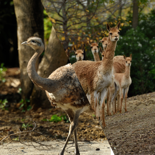 Au zoo, la vigogne cohabite avec le nandou, même s’ils vivent dans des régions différentes dans la nature.