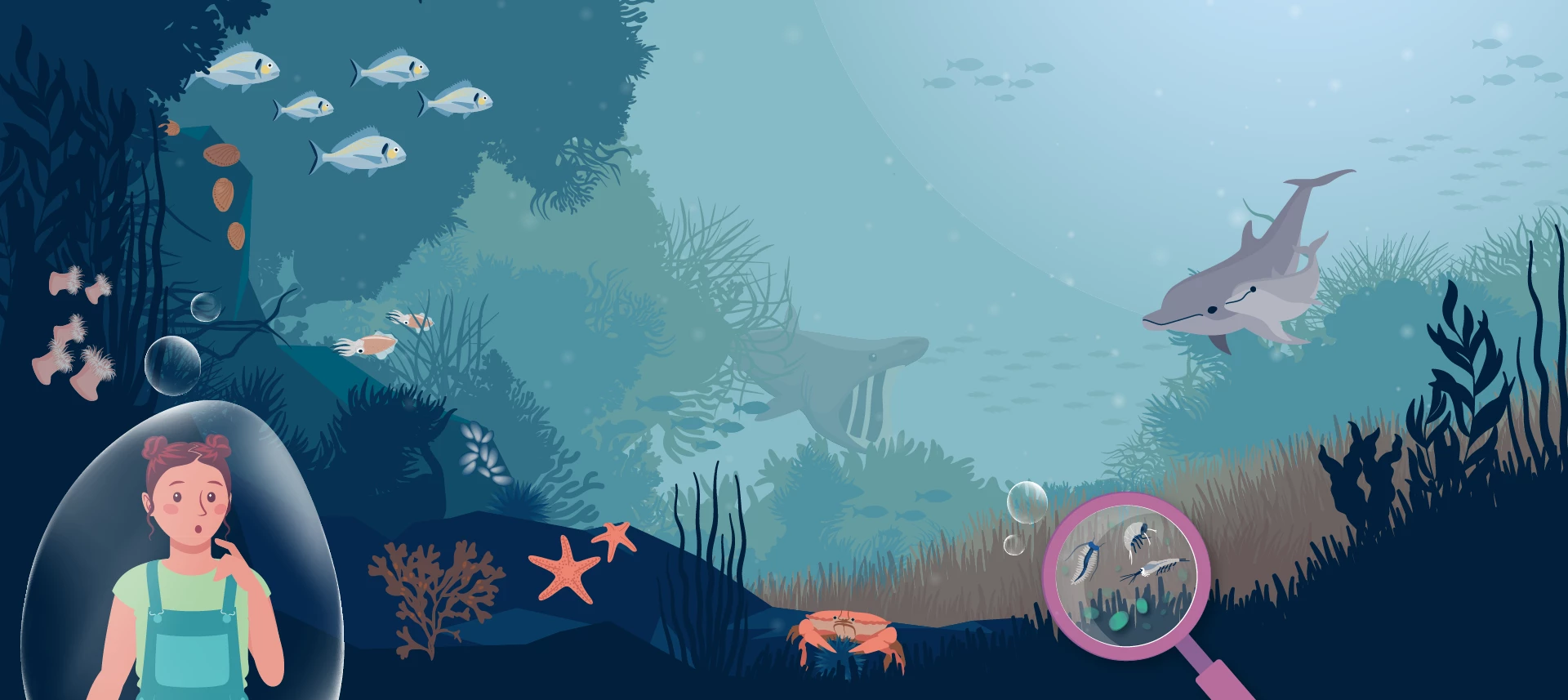 et propulsée… sous l’eau ! Heureusement que cette bulle me protège,