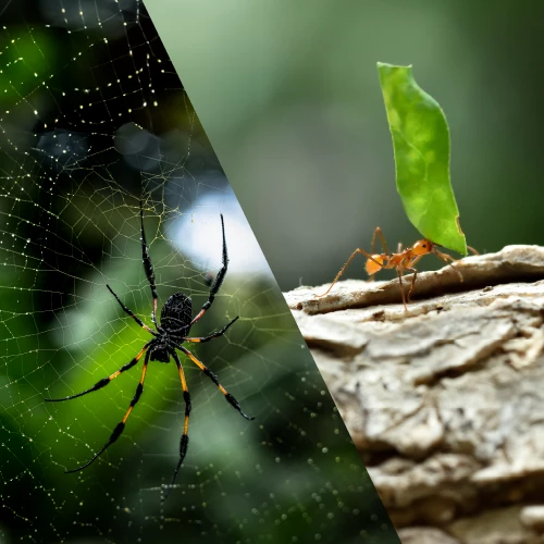 Les deux petites bêtes sont bien différentes ! L’araignée fait partie de la famille des arachnides et possède 8 pattes. La petite bête de droite fait partie de la famille des insectes et possède 6 pattes.