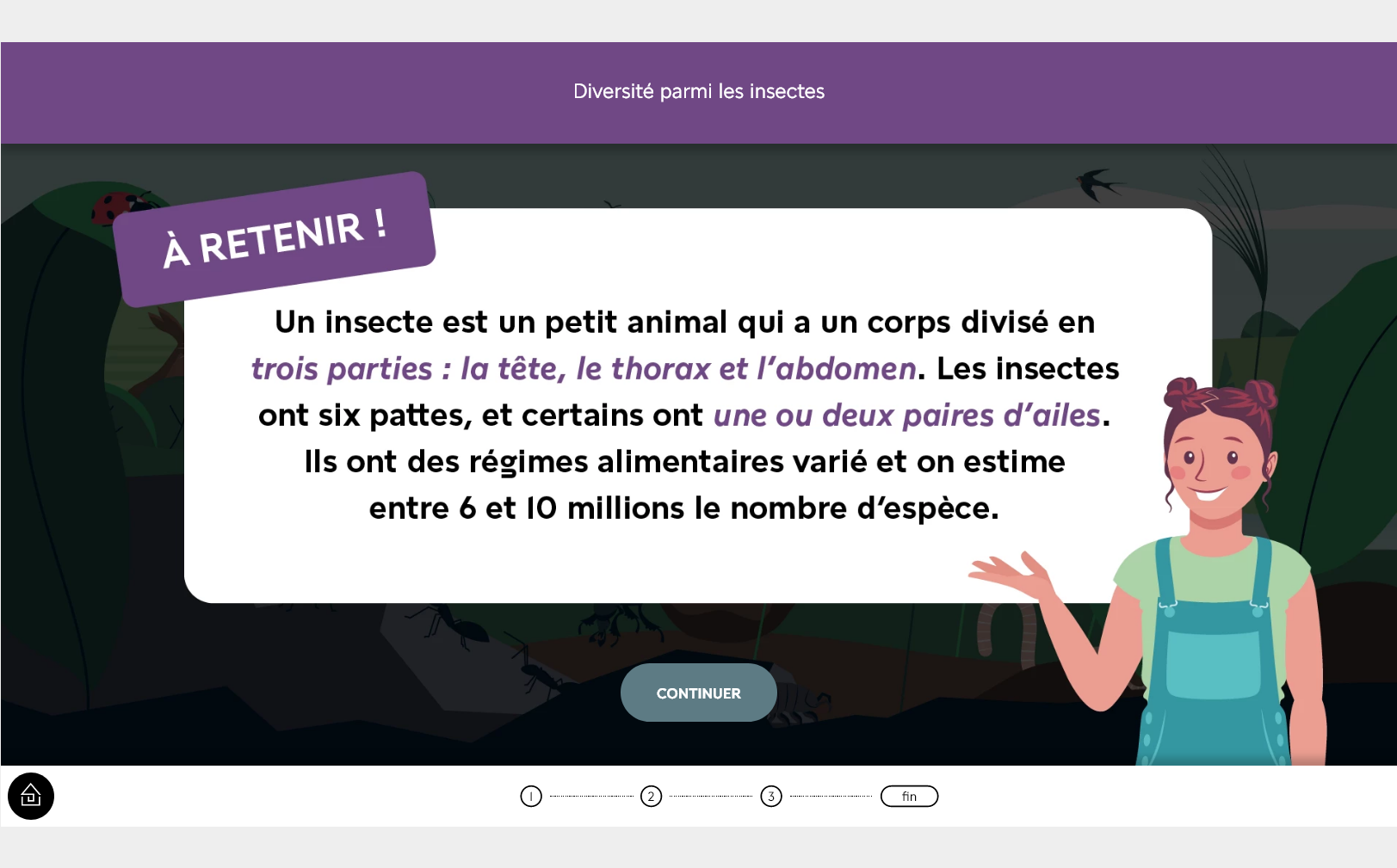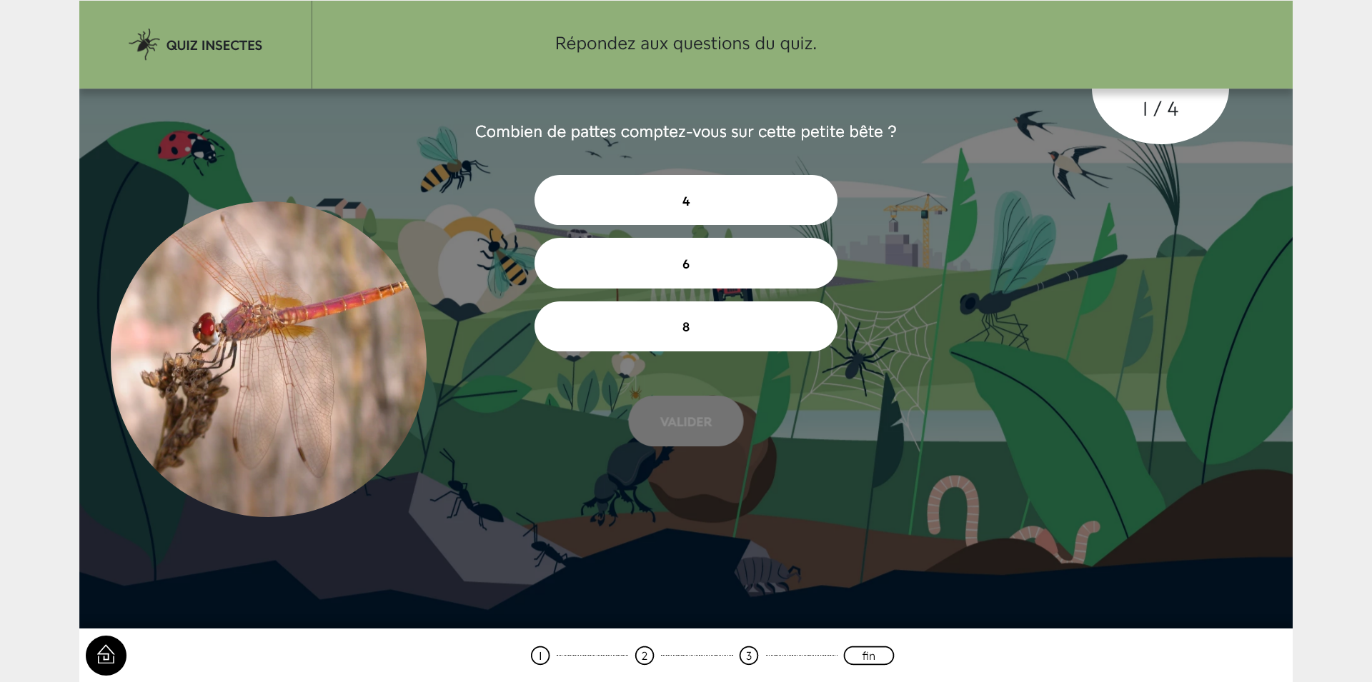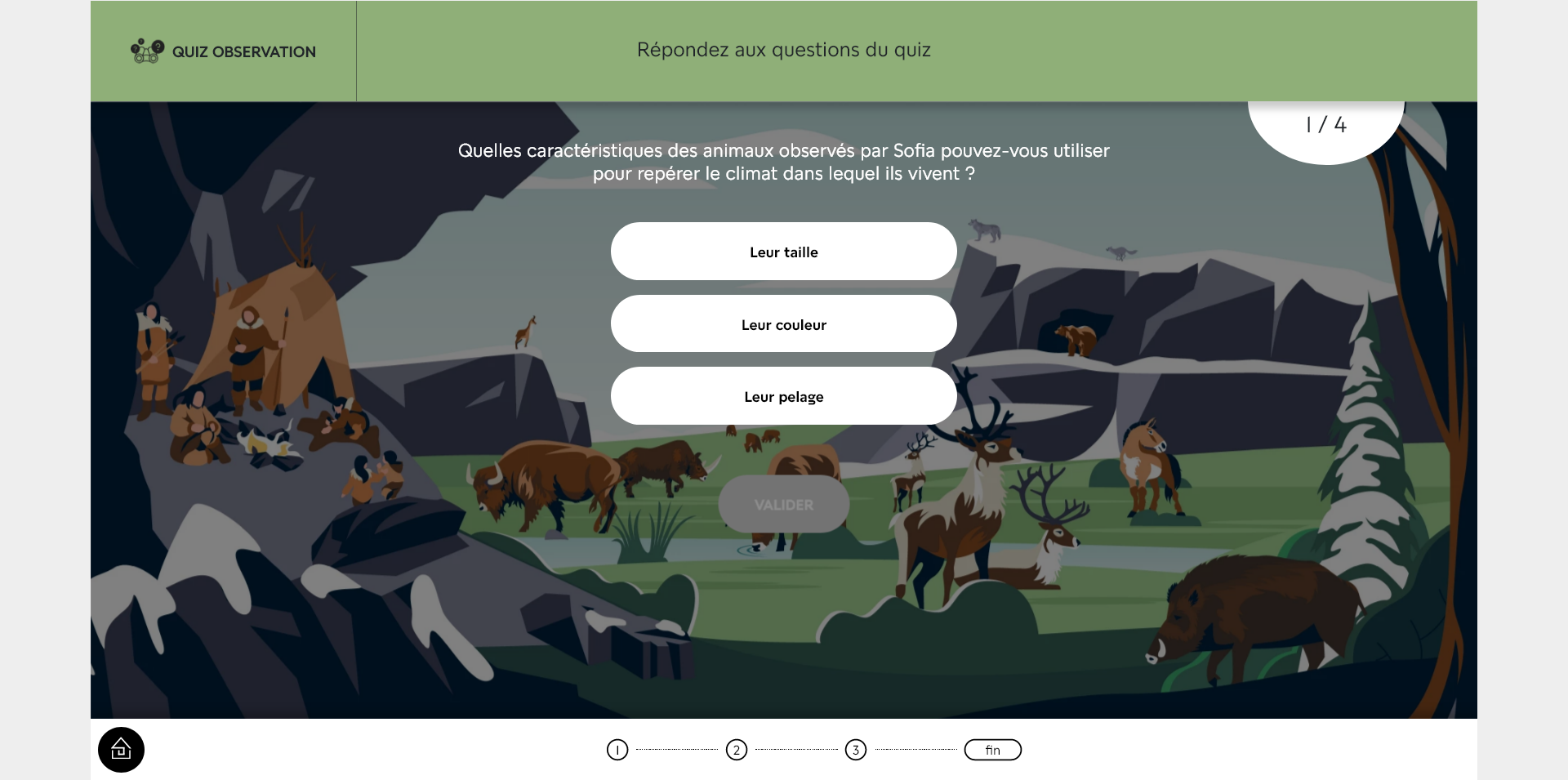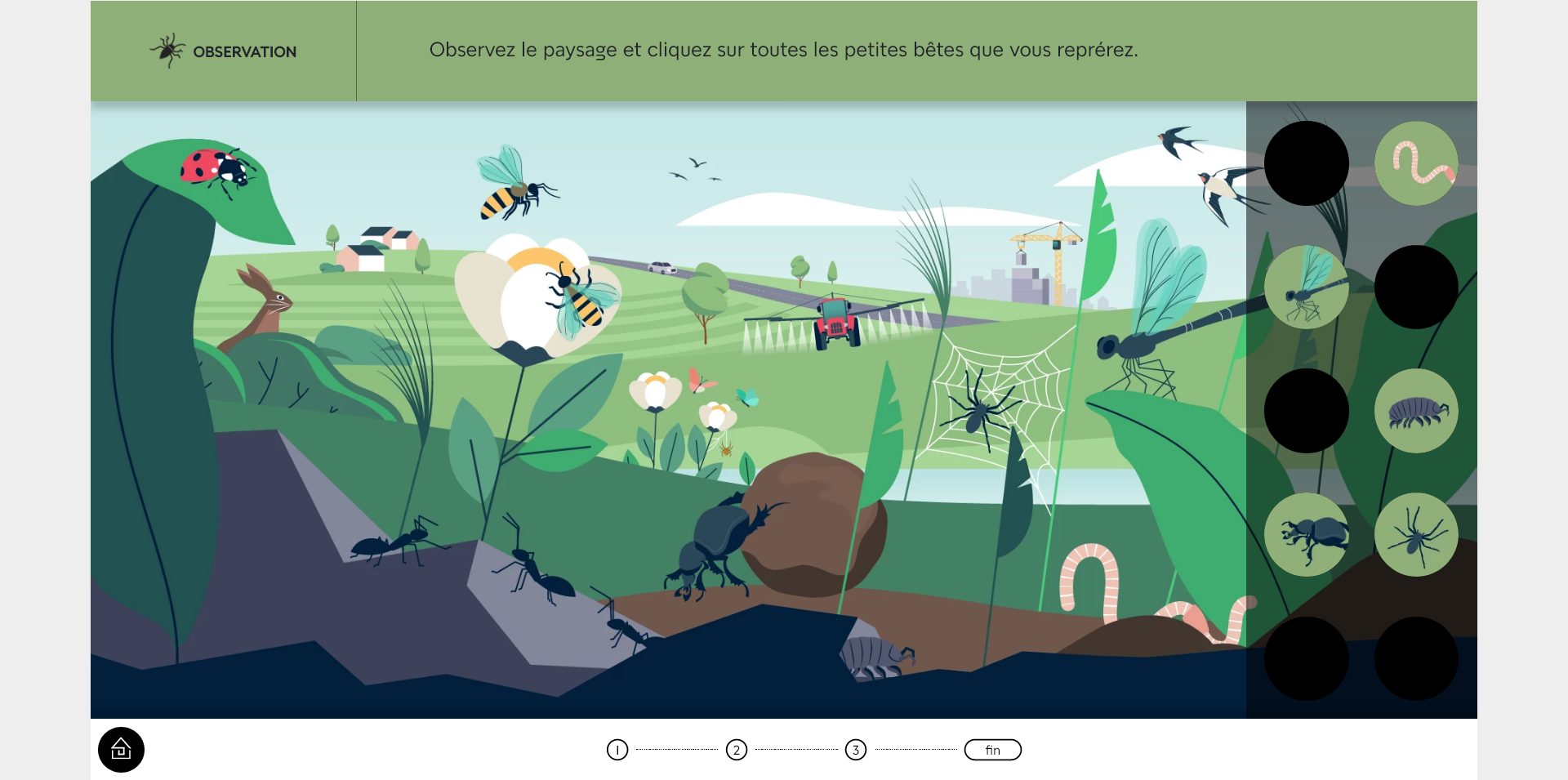 La progression dans une aventure n’étant pas sauvegardée, si vous souhaitez la réaliser en plusieurs temps, vous pouvez rejoindre l’étape en cours en cliquant sur le numéro de l’étape en bas de l’écran.